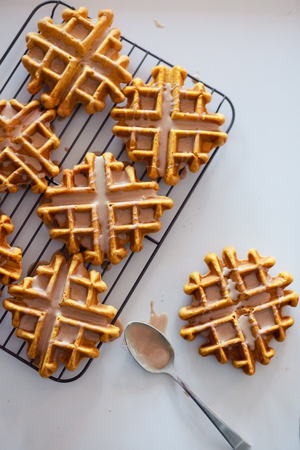 In the season of the PSL (Pumpkin Spice Latte) what’s better than mixing in a couple of other favorites… waffles and doughnuts!! Topped with an espresso glaze, it’s a treat that’s good for breakfast, lunch or dinner!