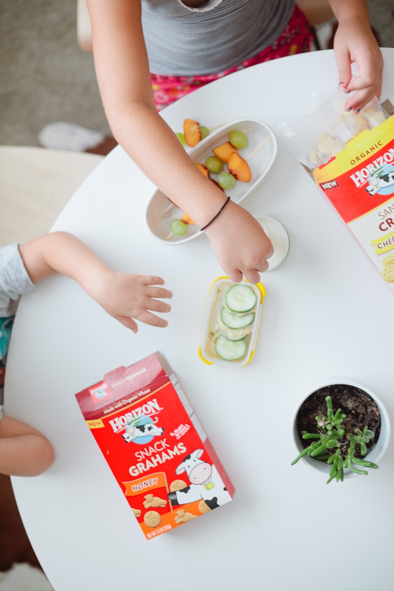 While I like making as much as I can in my own kitchen so that I know exactly what is in the foods we eat, I also have a practical and realistic side that knows kids get hungry at the most inopportune times and sometimes I need a little help filling in the gaps. Lately we’ve been trying (and loving) Horizon’s new line up of snack options and either rounding out our lunches with items like their Super Squeeze pouches (with 5 grams of protein!) or keeping items on hand to nosh on when the need arises, which is often. My kids are SUCH snackers.