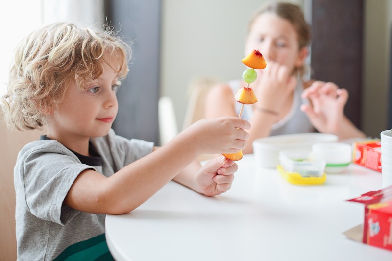 Pack simple, nutritious foods in a new way and it will intrigue your littles into tasting it. When in doubt “kabob” it. Use toothpicks, popsicle sticks or skewers (just cut the tips off after). Have the ingredients for a sandwich? Put it on a stick instead and they may just eat every bit! Make it savory or sweet, and as an added bonus, throw in a cup for dipping (yogurt for fruits and hummus, ranch, etc. for savory).