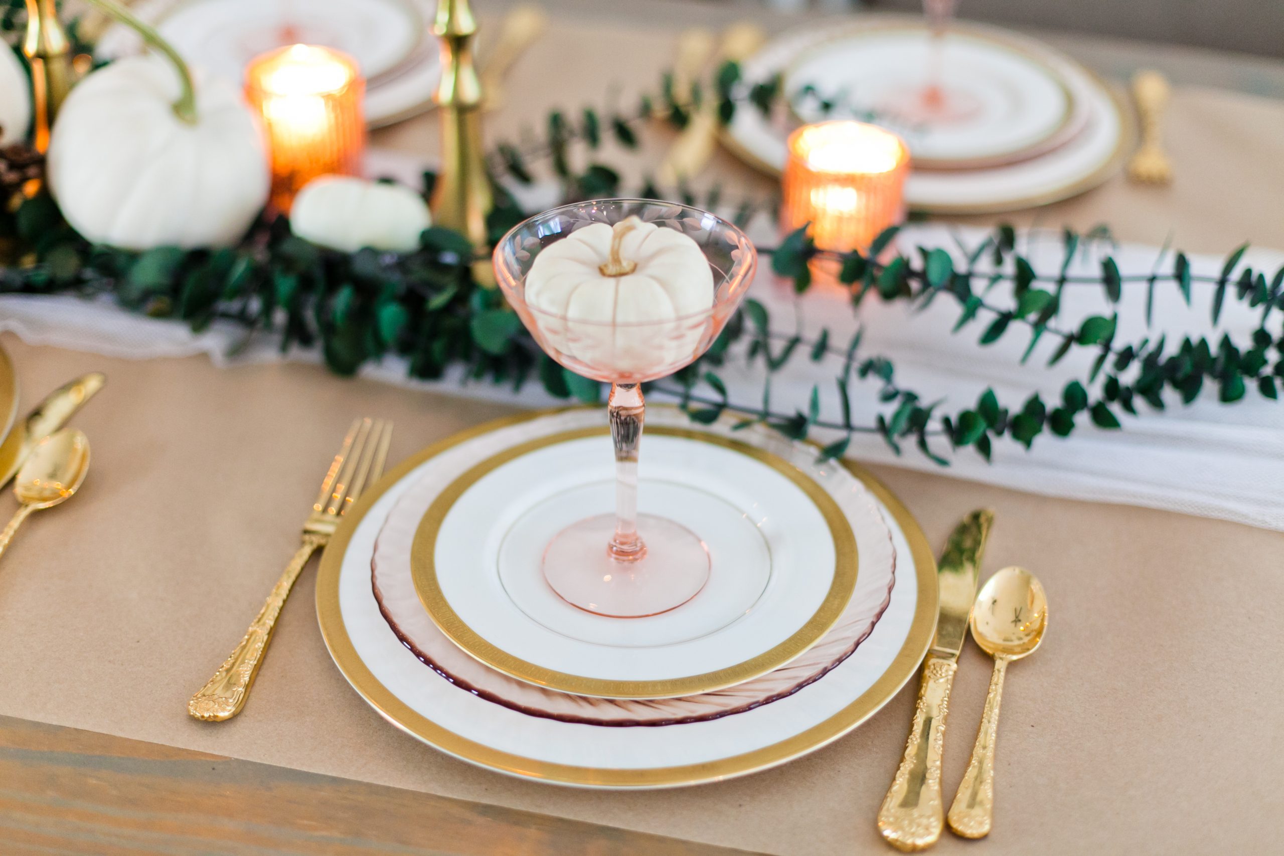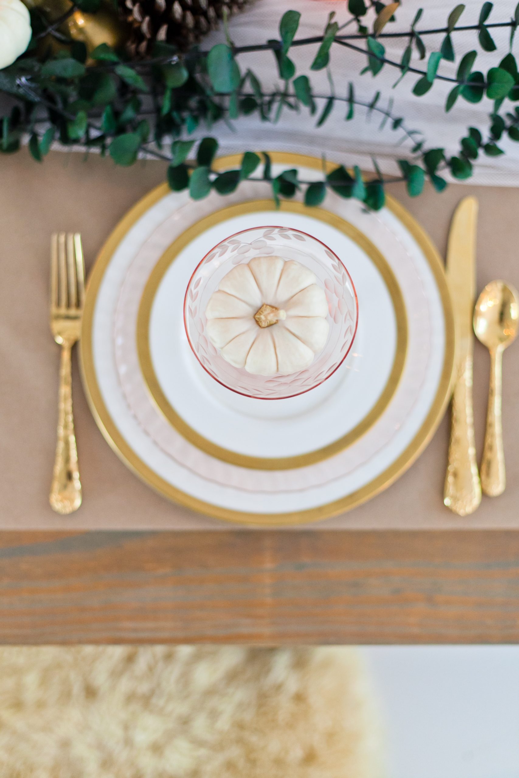 I like to set a small item at each person’s place setting, such as a pumpkin or leaf or ornament with their name written on it. These are the small details that I find make each person feel a little more special, plus it serves as a little gift that they can take home as a remembrance of the day.