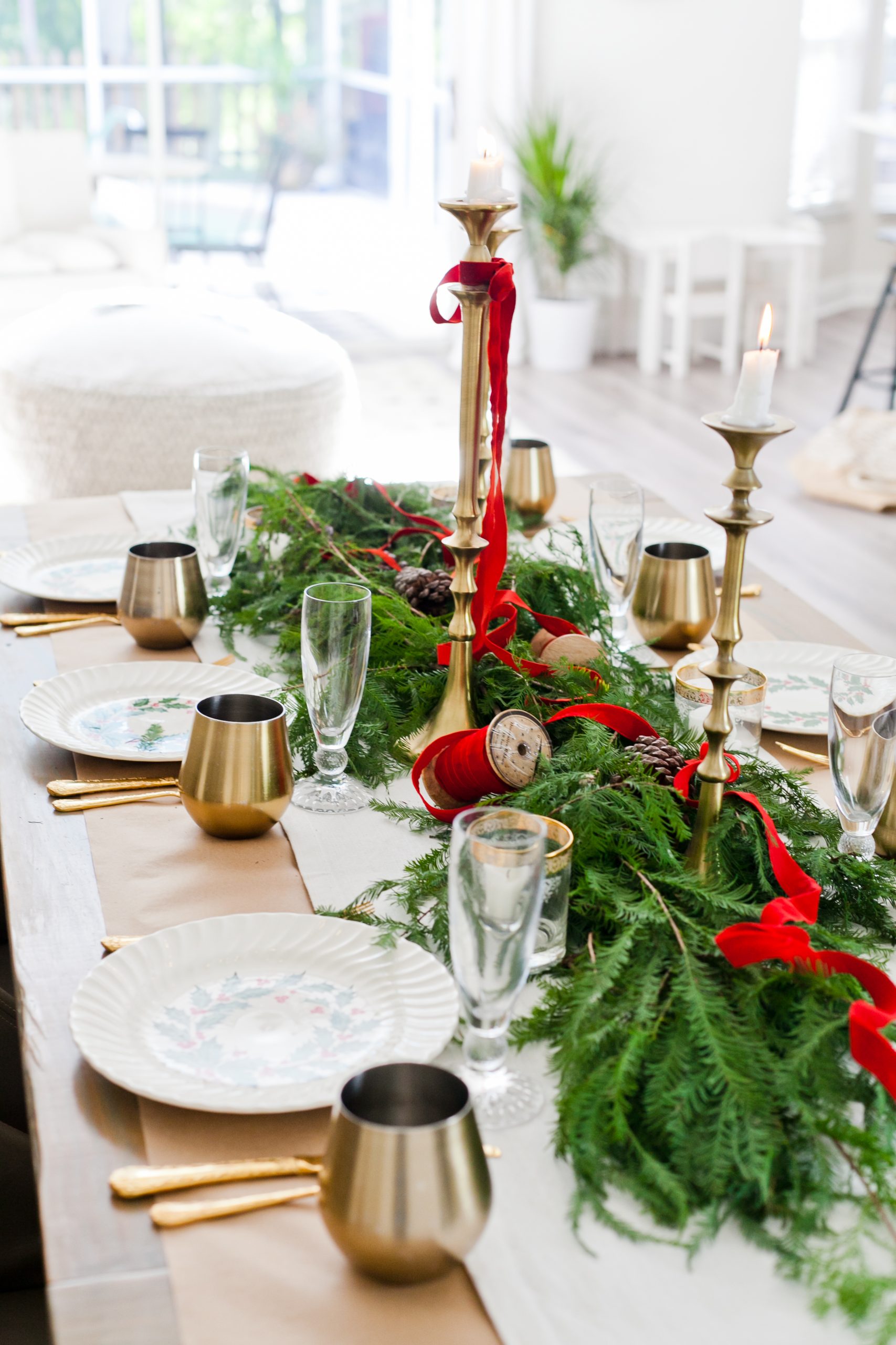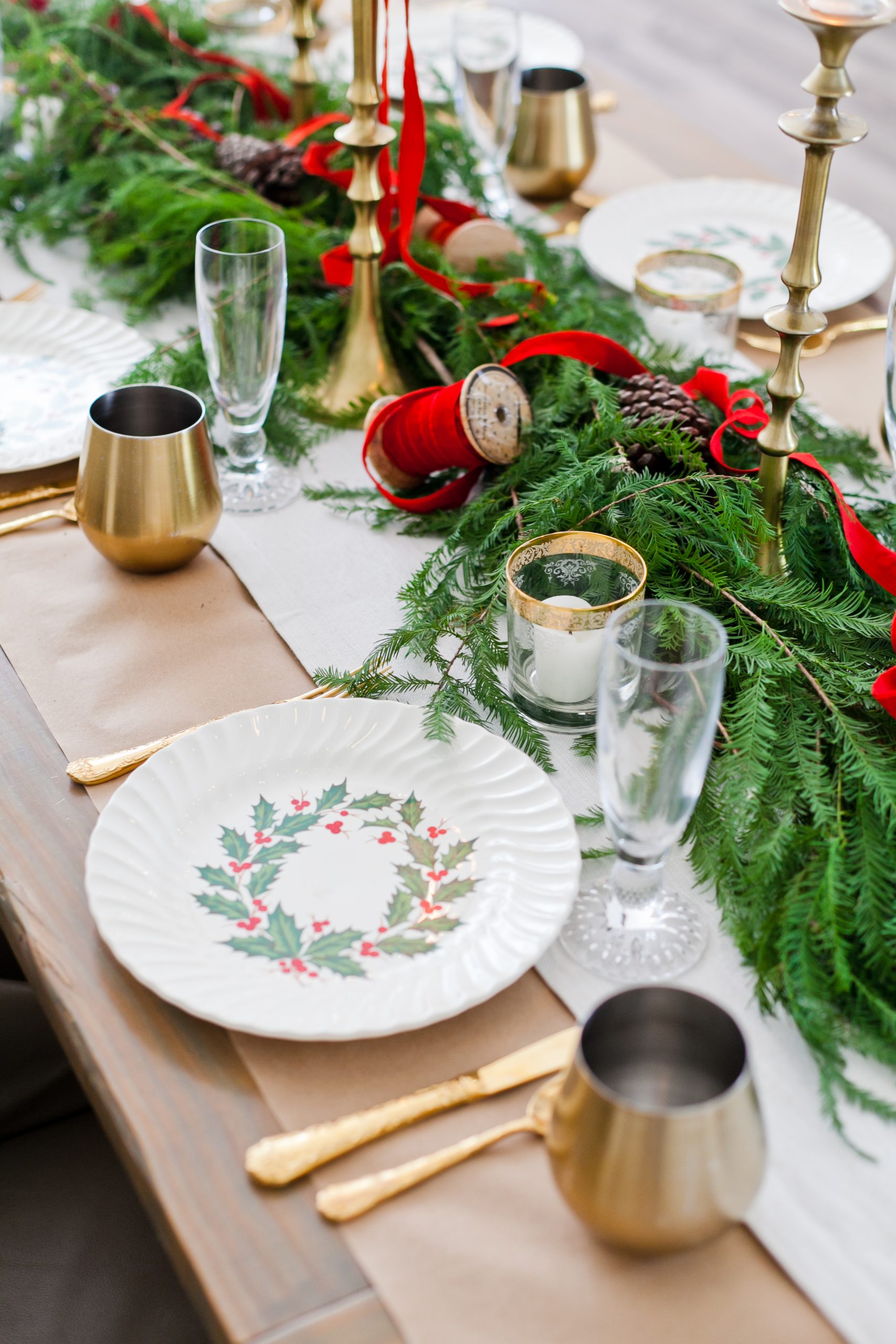 To me, nothing sets the tone for holiday decorating more than a dining room table set with china, candles, flowers and decor for the season.