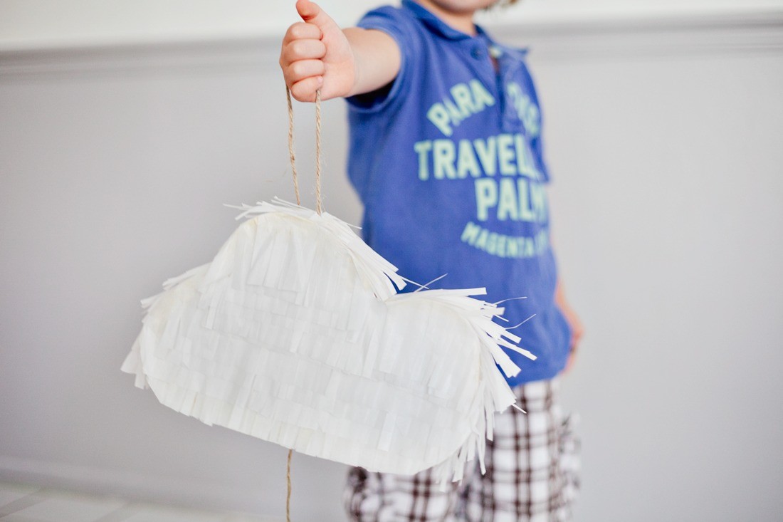 There’s nothing that says “party” like a piñata, and it’s actually fairly simple to make your own DIY mini piñata fit in with any theme!! For our sky party this past weekend, I was all about these cute mini cloud piñatas! Yes, it’s a tad bit time consuming, but just hunker down with all of your supplies in front of the Hallmark channel for an evening and you’ll be all set. I’m not the only one who uses that channel as a crafting guilty-pleasure, right? One really big upside, you can save some serious cash by making your own. Since I had most of the supplies on hand, it cost me less than a dollar to make these!