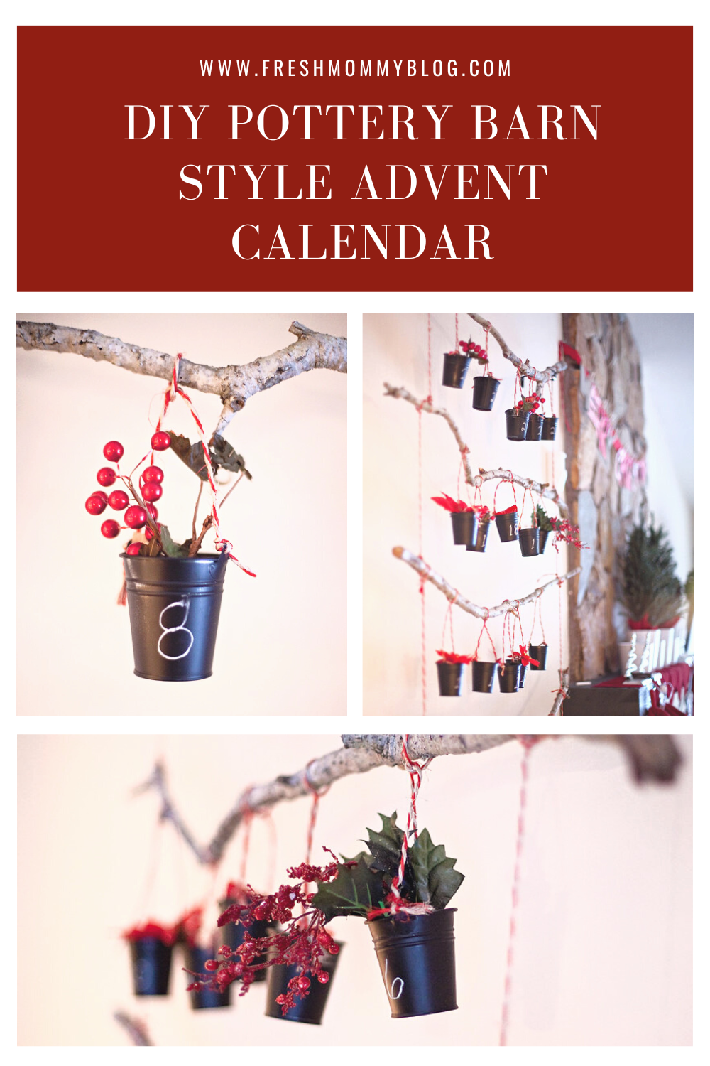 When I was looking at Advent Calendars online I found the Pottery Barn advent calendar you made yourself. Can you believe they wanted $299.99 for something made with buckets and string? I figured it would be fairly easy to make. It’s certainly adorable! Love it.