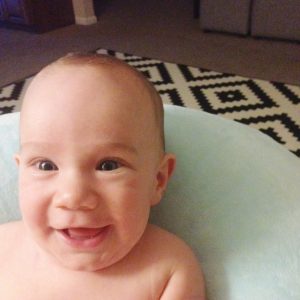 ^ These coral shorts are SO cute, but the little guy has some growing to do before he really fits in them.
