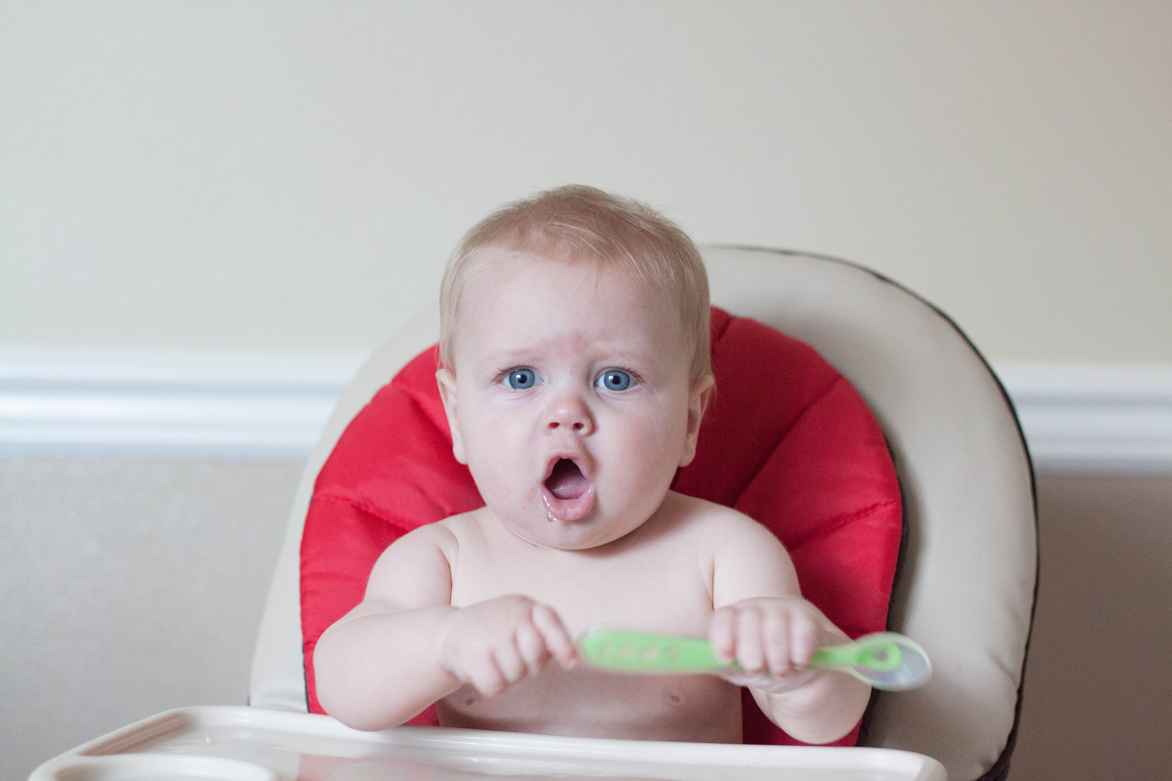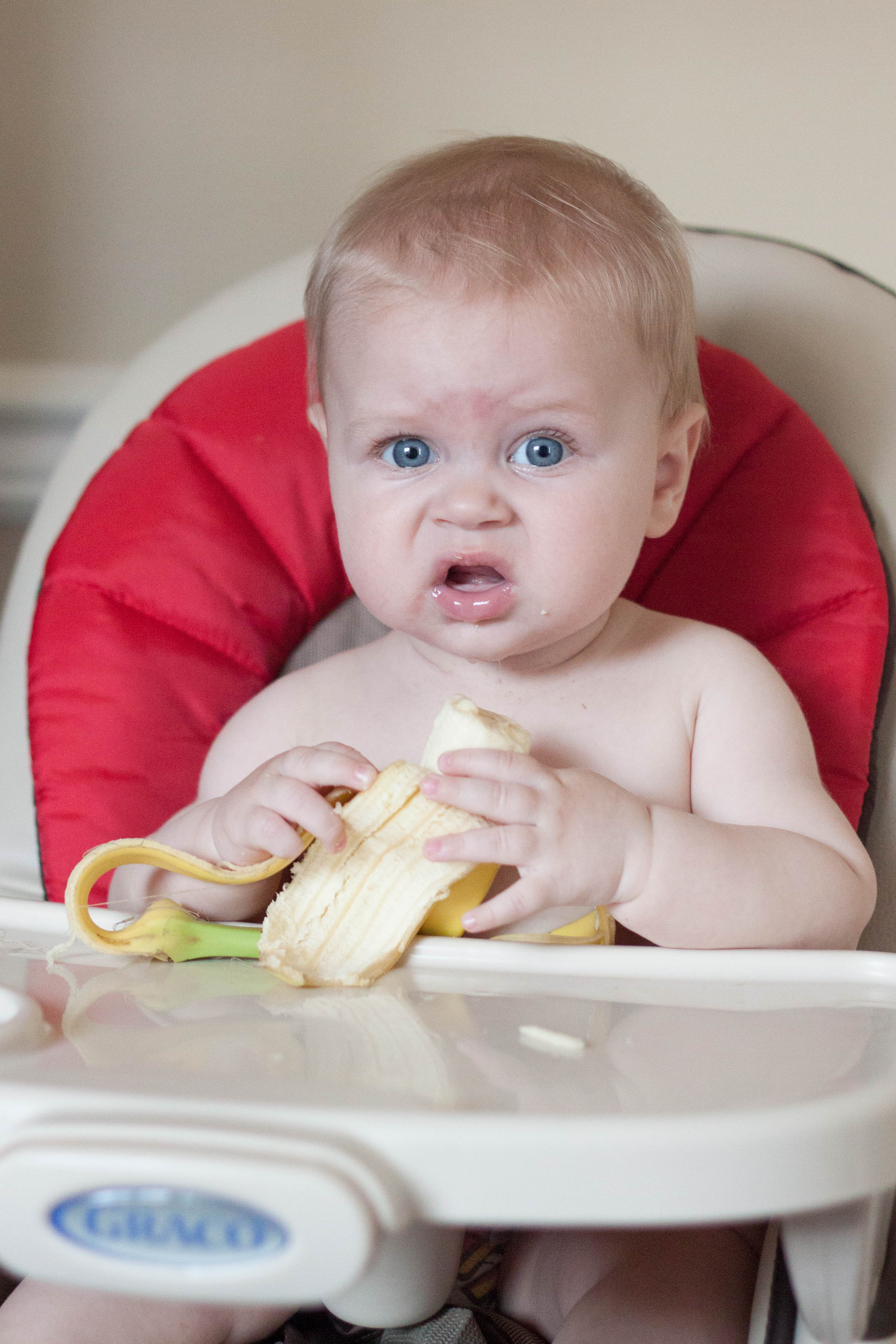 Finn is officially 6 months old and is sitting up well on his own, so we’ve started venturing into the “real food” territory with him. It’s pretty hilarious!