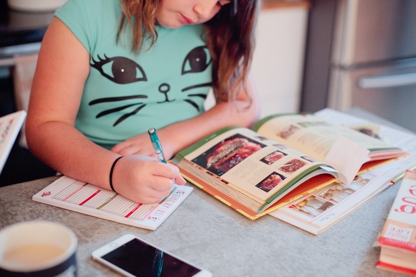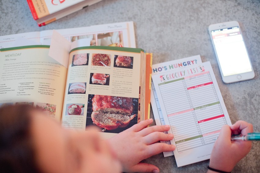 Together we’ll pull out the recipe books and choose a meal she things she can handle in the kitchen, not that we’ll leave her on her own, but she is the one in charge and doing the majority of the work and decision making. Once the meal is chosen, we’ll write out our grocery list!