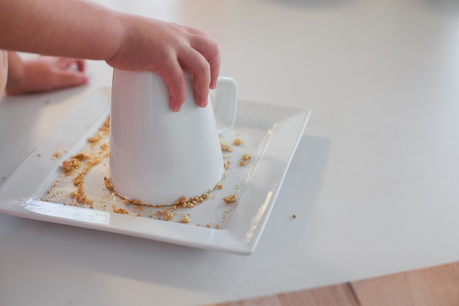 First, my cute little sidekicks unwrapped a bunch of Rolos, crushed up some graham crackers and taste-tested a few mini marshmallows for me, while I melted some dark chocolate chips in a saucepan of milk. Then while I chopped up the Rolos to add in to the milk mixture, along with some cream and a pinch of sea salt, they rubbed a marshmallow along the rim of our mugs to make them nice and sticky… and ready to dip in the crushed graham crackers. Good little helpers, I tell you. And cute too.
