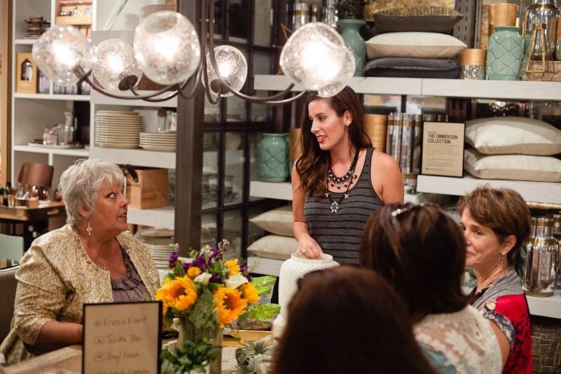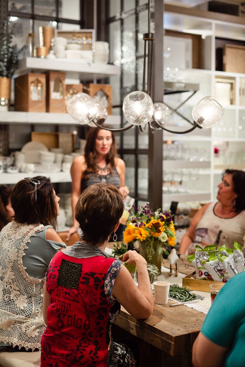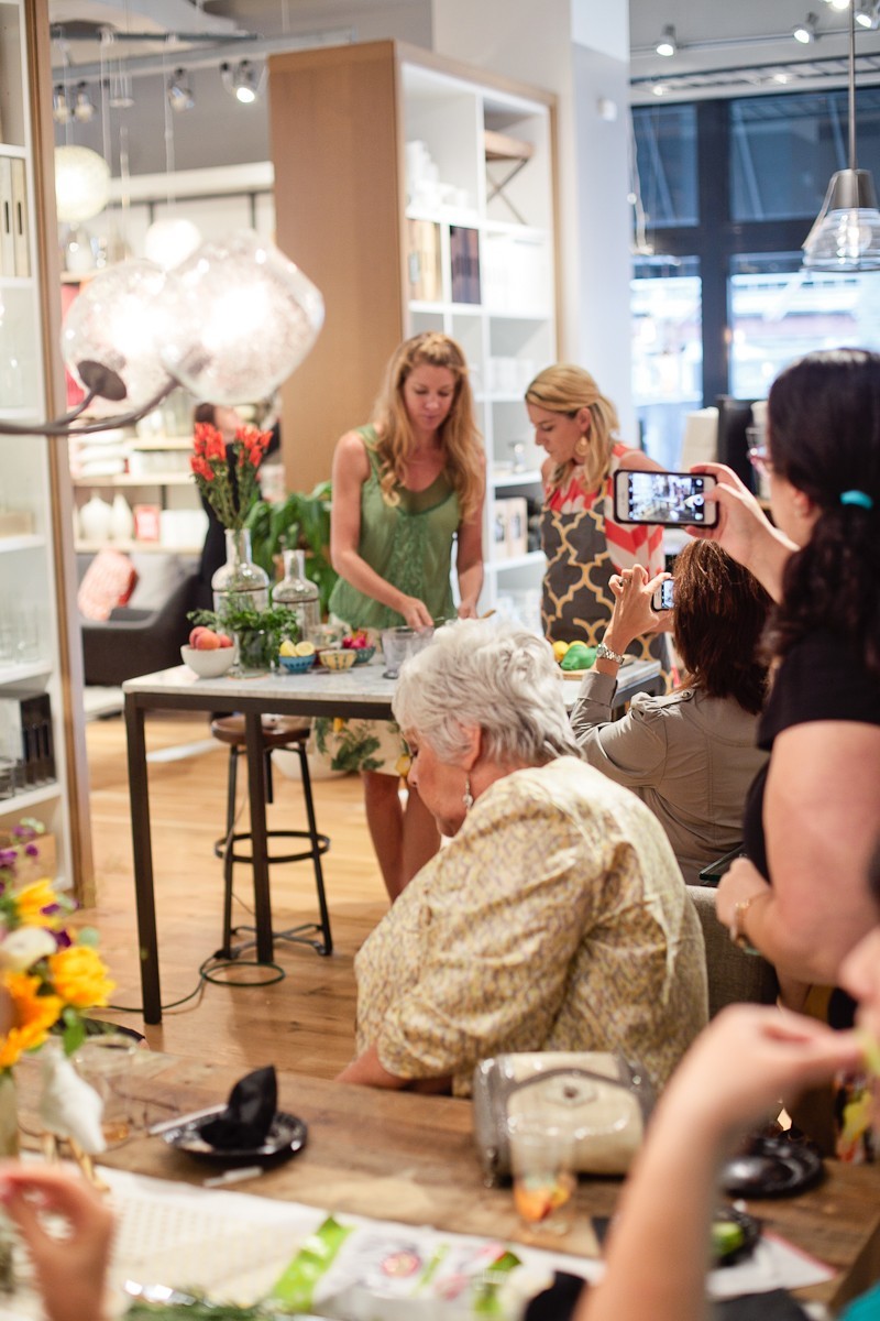 This past weekend the skies have been opening to downpours of relentless rain. With flood warnings abounding, the doors of West Elm stood as our oasis from the dampening gray of the outdoors. Women poured into the welcoming bright lights, and plushly decorated surroundings shaking off remaining bits of water droplets over the wooden floors as they settled in for a night of summer entertaining fun at our most recent #FreshEvent with in Tampa.