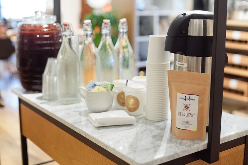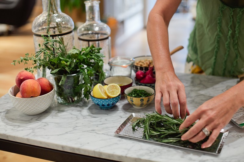 It was the perfect respite from the storm, and I have to say, this #FreshEvent fully delivered! The sweet treats from Piquant were out of this world. We sipped coffee from Pony Brand Coffee and tea infused with our own peach simple syrup and mint (recipe coming soon), we noshed on white bean dip that author Krayl Funch of An Appealing Plan demonstrated how to make and it seriously had everyone drooling for more (yes, it was that good, and again recipe coming soon). The star of the night was fresh herbs abounding, from the recipes to the tabletop decor pouring over the backdrop of mixed bowls, napkins and fun decor we had the pleasure of playing with for the evening from West Elm!